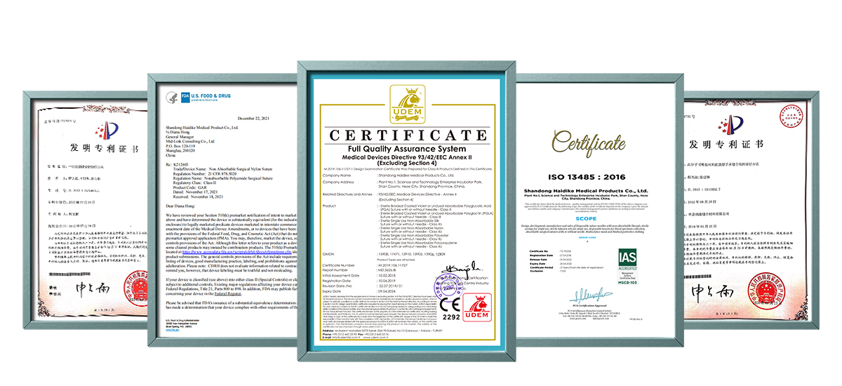 海迪科坚持提供品质的产品,在欧美等发达市场重新塑造了对产品的信心。 2014年海迪科通过德国TÜV Ps的 9001/13485质量体系认证。2012年至2015年,手术缝合针、可吸收缝合针线、非可吸收缝合针线等产品先后获得欧盟CE0197认证。2016年,海迪科获得美国FDA(美国食品药品监督管理局)市场准入许可,2019年获得欧盟三类认证CE2292。2020年成为山东省防疫物资生产重点企业,商务部出口“白名单”企业。