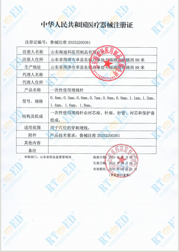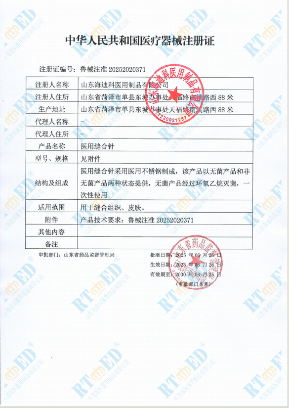 山東海(hai)迪科六月喜迎豐收醫美及(ji)縫合針領域多張二類證(zheng)落地!