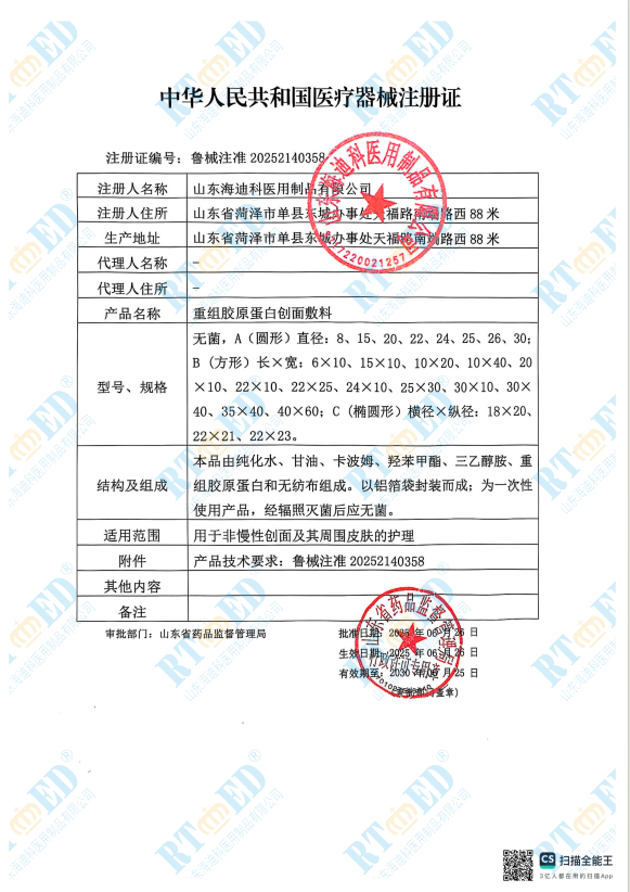 在醫(yi)(yi)美(mei)方向,山東海迪科成功集齊醫(yi)(yi)用(yong)(yong)縫合針、埋線針、重組膠(jiao)原蛋白等多張重磅(bang)二類證,全面覆蓋醫(yi)(yi)美(mei)領域(yu)多個關鍵應用(yong)(yong)場景,為其在醫(yi)(yi)美(mei)市場的布(bu)局(ju)增添(tian)了重要砝碼。